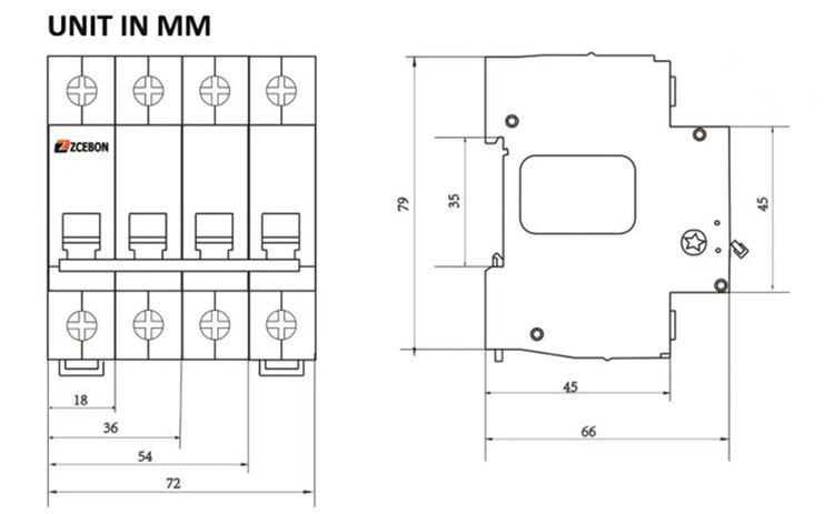 The Circuit Breaker Isolator that can be seen in the home are generally only 1P and 2P. 1P and 2P are also called 1-level and 2-level. Each level corresponds to two upper and lower terminals, and the width of each level is 17.5 mm (for example, 2P circuit breaker The width of the device is 17.5*2=35mm).