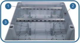 | D type lifting bracket 1. Lifting bracket 2. Screws for the lifting bracket 3. Din rail 4. Screws for the Din rail |
